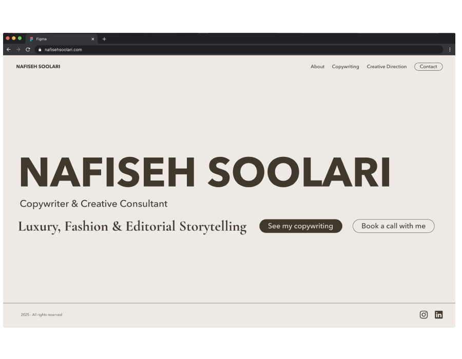 "Léa Lamoine est une talentueuse designer web et UX qui partage plusieurs de mes principes de travail. Je l'ai engagée pour mener à bien ce projet en 2 phases (logo/identité visuelle, 2023 & web, 2024) et je ne pourrais pas être plus heureuse des résultats des deux ! "